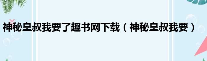 导读 大家好,今天小六子来为大家解答以下的问题,关于神秘皇叔我要了趣书网下载,神秘皇叔我要这个很多人还不知道,现在让我们一起来看看吧!1、