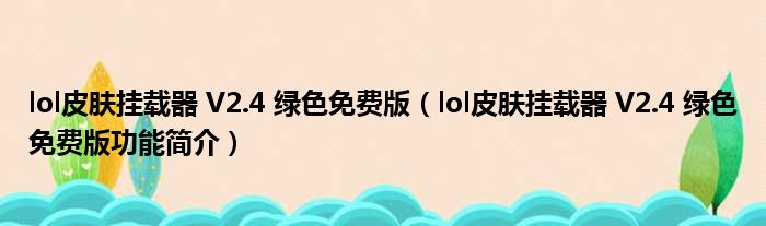 lol皮肤挂载器 V2.4 绿色免费版(lol皮肤挂载器 V2.4 绿色免费版功能简介)