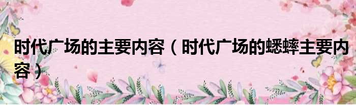 导读 大家好,今天小六子来为大家解答以下的问题,关于时代广场的主要内容,时代广场的蟋蟀主要内容这个很多人还不知道,现在让我们一起来看看吧
