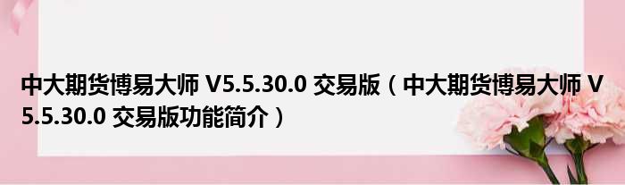 中大期货博易大师 V5.5.30.0 交易版(中大期货博易大师 V5.5.30.0 交易版功能简介)
