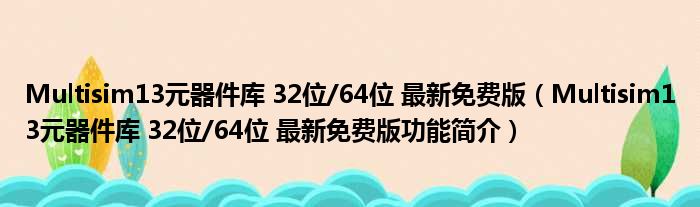 导读 大家好,关于Multisim13元器件库 32位 64位 最新免费版,Multisim13元器件库 32位 64位 最新免费版功能简介这个很多人还不知道,小勒来为