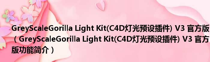 GreyScaleGorilla Light Kit(C4D灯光预设插件) V3 官方版(GreyScaleGorilla Light Kit(C4D灯光预设插件) V3 官方版功能简介)