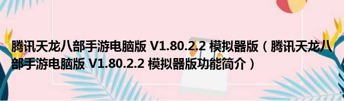 腾讯天龙八部手游电脑版 V1.80.2.2 模拟器版(腾讯天龙八部手游电脑版 V1.80.2.2 模拟器版功能简介)