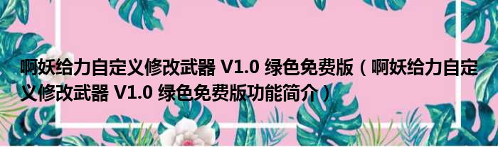啊妖给力自定义修改武器 V1.0 绿色免费版(啊妖给力自定义修改武器 V1.0 绿色免费版功能简介)
