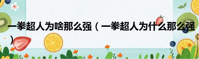 一拳超人为啥那么强(一拳超人为什么那么强)