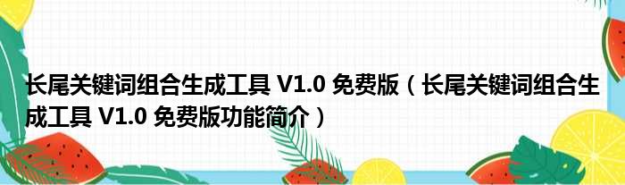 长尾关键词组合生成工具 V1.0 免费版(长尾关键词组合生成工具 V1.0 免费版功能简介)