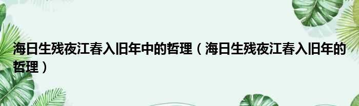 海日生残夜江春入旧年中的哲理(海日生残夜江春入旧年的哲理)