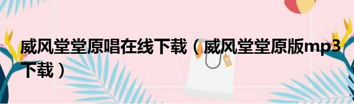 导读 大家好,今天小六子来为大家解答以下的问题,关于威风堂堂原唱在线下载,威风堂堂原版mp3下载这个很多人还不知道,现在让我们一起来看看吧!