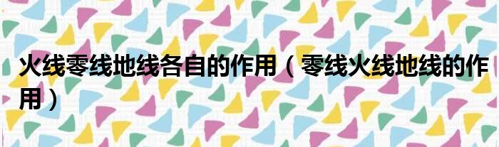 大家好,今天小六子来为大家解答以下的问题,关于火线零线地线各自的作用,零线火线地线的作用这个很多人还不知道,现在让我们一起来看看吧!