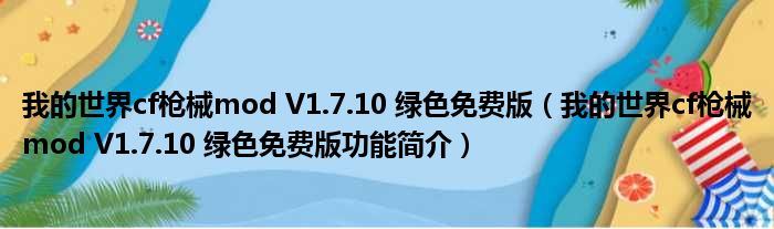导读 大家好,关于我的世界cf枪械mod V1 7 10 绿色免费版,我的世界cf枪械mod V1 7 10 绿色免费版功能简介这个很多人还不知道,小勒来为大家解