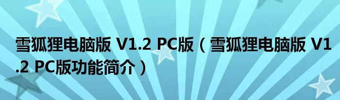 雪狐狸电脑版 V1.2 PC版(雪狐狸电脑版 V1.2 PC版功能简介)