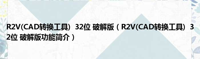R2V(CAD转换工具) 32位 破解版(R2V(CAD转换工具) 32位 破解版功能简介)