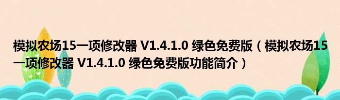 导读 大家好,关于模拟农场15一项修改器 V1 4 1 0 绿色免费版,模拟农场15一项修改器 V1 4 1 0 绿色免费版功能简介这个很多人还不知道,小勒来