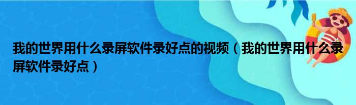 我的世界用什么录屏软件录好点的视频(我的世界用什么录屏软件录好点)