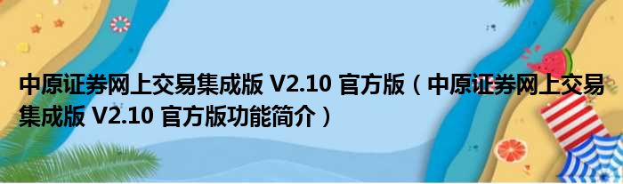 中原证券网上交易集成版 V2.10 官方版(中原证券网上交易集成版 V2.10 官方版功能简介)