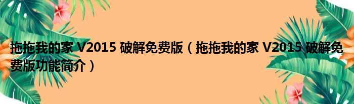 拖拖我的家 V2015 破解免费版(拖拖我的家 V2015 破解免费版功能简介)