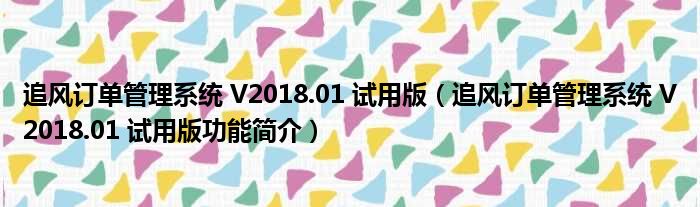 追风订单管理系统 V2018.01 试用版(追风订单管理系统 V2018.01 试用版功能简介)