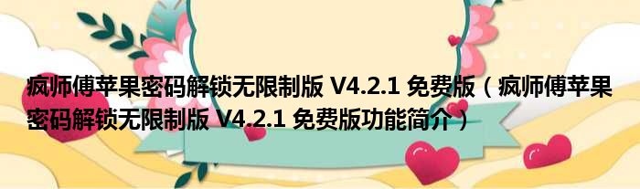 疯师傅苹果密码解锁无限制版 V4.2.1 免费版(疯师傅苹果密码解锁无限制版 V4.2.1 免费版功能简介)