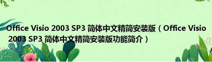 Office Visio 2003 SP3 简体中文精简安装版(Office Visio 2003 SP3 简体中文精简安装版功能简介)
