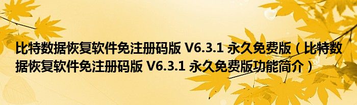 比特数据恢复软件免注册码版 V6.3.1 永久免费版(比特数据恢复软件免注册码版 V6.3.1 永久免费版功能简介)