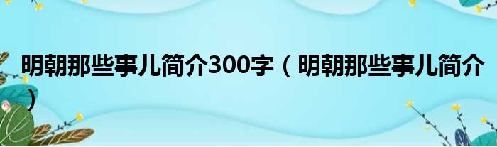 明朝那些事儿简介300字(明朝那些事儿简介)
