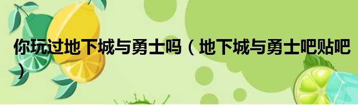 导读 大家好,今天小六子来为大家解答以下的问题,关于你玩过地下城与勇士吗,地下城与勇士吧贴吧这个很多人还不知道,现在让我们一起来看看吧!1