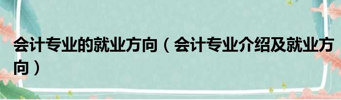 导读 大家好,今天小六子来为大家解答以下的问题,关于会计专业的就业方向,会计专业介绍及就业方向这个很多人还不知道,现在让我们一起来看看吧