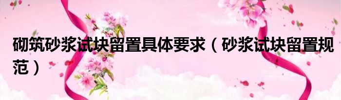 砌筑砂浆试块留置具体要求(砂浆试块留置规范)