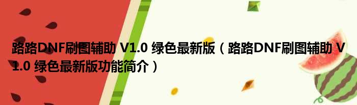 导读 大家好,关于路路DNF刷图辅助 V1 0 绿色最新版,路路DNF刷图辅助 V1 0 绿色最新版功能简介这个很多人还不知道,小勒来为大家解答以上的问
