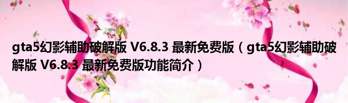 gta5幻影辅助破解版 V6.8.3 最新免费版(gta5幻影辅助破解版 V6.8.3 最新免费版功能简介)