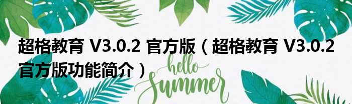 超格教育 V3.0.2 官方版(超格教育 V3.0.2 官方版功能简介)