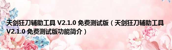 导读 大家好,关于天剑狂刀辅助工具 V2 1 0 免费测试版,天剑狂刀辅助工具 V2 1 0 免费测试版功能简介这个很多人还不知道,小勒来为大家解答以