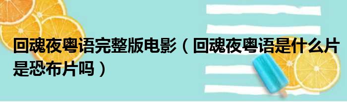 导读 大家好,今天小六子来为大家解答以下的问题,关于回魂夜粤语完整版电影,回魂夜粤语是什么片是恐布片吗这个很多人还不知道,现在让我们一起