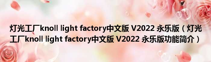 灯光工厂knoll light factory中文版 V2022 永乐版(灯光工厂knoll light factory中文版 V2022 永乐版功能简介)