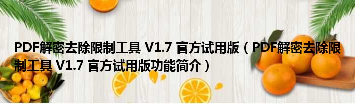 导读 大家好,关于PDF解密去除限制工具 V1 7 官方试用版,PDF解密去除限制工具 V1 7 官方试用版功能简介这个很多人还不知道,小勒来为大家解答