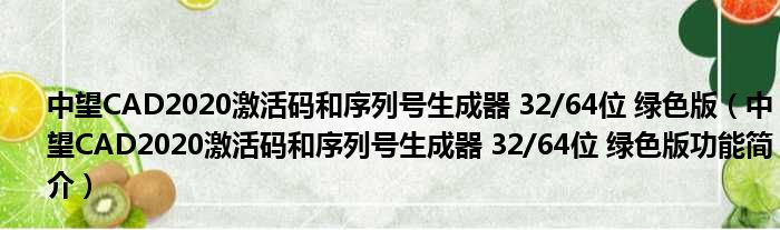 中望CAD2020激活码和序列号生成器 32/64位 绿色版(中望CAD2020激活码和序列号生成器 32/64位 绿色版功能简介)