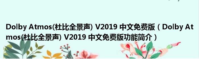 导读 大家好,关于Dolby Atmos(杜比全景声) V2019 中文免费版,Dolby Atmos(杜比全景声) V2019 中文免费版功能简介这个很多人还不知道,小勒