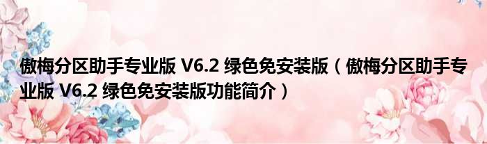 傲梅分区助手专业版 V6.2 绿色免安装版(傲梅分区助手专业版 V6.2 绿色免安装版功能简介)