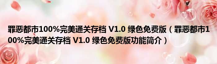 罪恶都市100%完美通关存档 V1.0 绿色免费版(罪恶都市100%完美通关存档 V1.0 绿色免费版功能简介)
