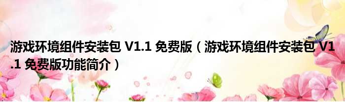 游戏环境组件安装包 V1.1 免费版(游戏环境组件安装包 V1.1 免费版功能简介)