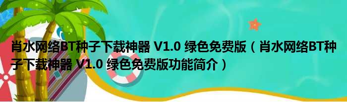 肖水网络BT种子下载神器 V1.0 绿色免费版(肖水网络BT种子下载神器 V1.0 绿色免费版功能简介)