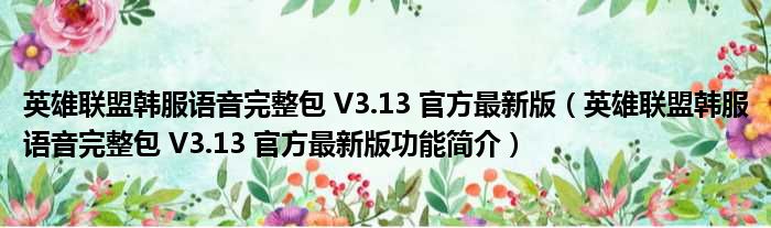 英雄联盟韩服语音完整包 V3.13 官方最新版(英雄联盟韩服语音完整包 V3.13 官方最新版功能简介)