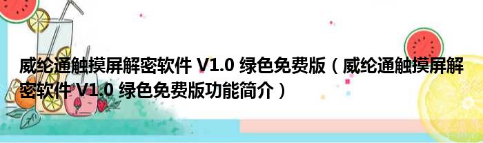 威纶通触摸屏解密软件 V1.0 绿色免费版(威纶通触摸屏解密软件 V1.0 绿色免费版功能简介)