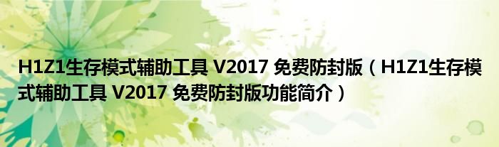 导读 大家好,关于H1Z1生存模式辅助工具 V2017 免费防封版,H1Z1生存模式辅助工具 V2017 免费防封版功能简介这个很多人还不知道,小勒来为大家