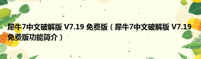 犀牛7中文破解版 V7.19 免费版(犀牛7中文破解版 V7.19 免费版功能简介)