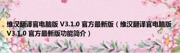 导读 大家好,关于维汉翻译官电脑版 V3 1 0 官方最新版,维汉翻译官电脑版 V3 1 0 官方最新版功能简介这个很多人还不知道,小勒来为大家解答以