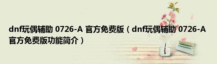 dnf玩偶辅助 0726-A 官方免费版(dnf玩偶辅助 0726-A 官方免费版功能简介)