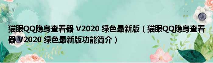 导读 大家好,关于猫眼QQ隐身查看器 V2020 绿色最新版,猫眼QQ隐身查看器 V2020 绿色最新版功能简介这个很多人还不知道,小勒来为大家解答以上