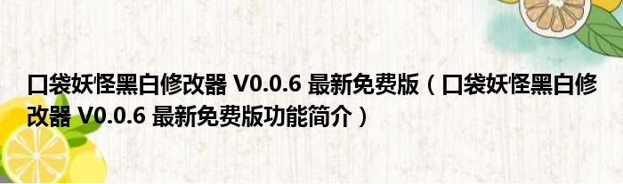 口袋妖怪黑白修改器 V0.0.6 最新免费版(口袋妖怪黑白修改器 V0.0.6 最新免费版功能简介)