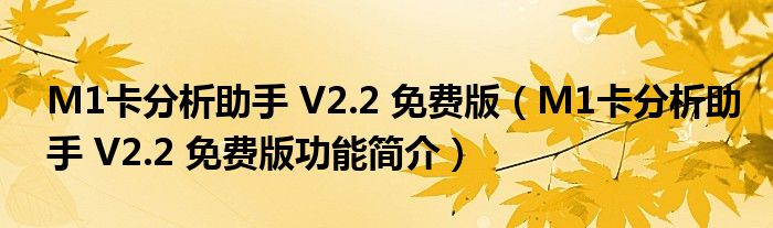 M1卡分析助手 V2.2 免费版(M1卡分析助手 V2.2 免费版功能简介)